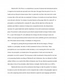 When reading Niccolo Machiavelli's The Prince, one can't help but grasp Machiavelli's argument that morality and politics can not exist in the same forum. However, when examining Machiavelli's various concepts in depth, one can conclude that perhaps his suggested violence and evil is fueled by a moral end of sorts.