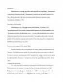 INTRODUCTION Schizophrenia is a serious mental illness. Patients experience progressive personality changes and a breakdown in their relationships with the outside world. They have disorganized and abnormal thinking, behaviour and language and become emotionally unresponsive or withdrawn. "The first signs, usually only noticed in looking back on events, are likely